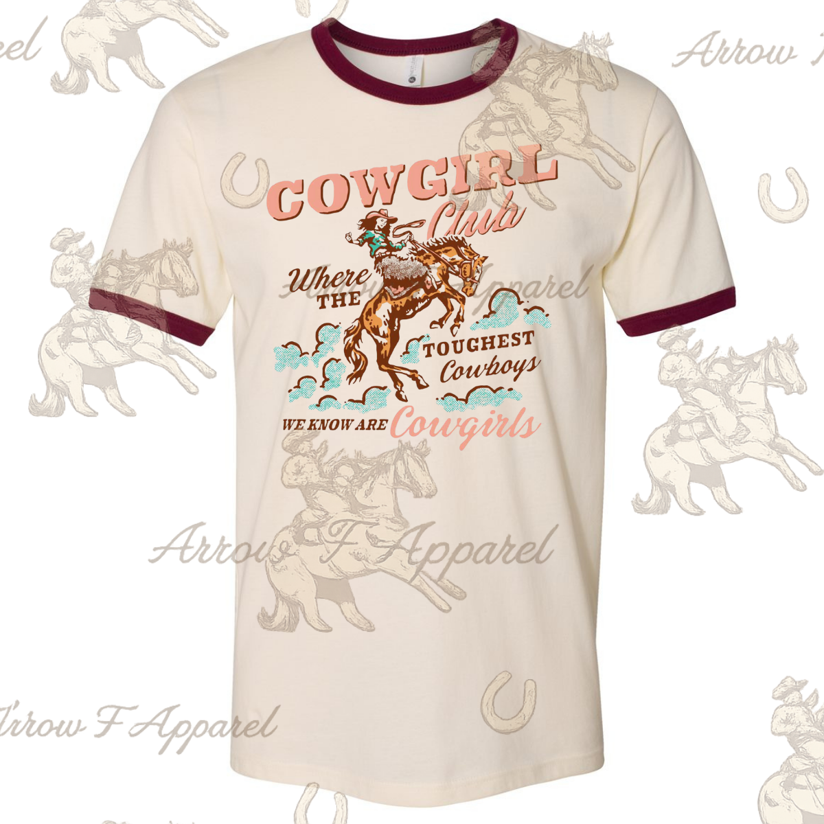 Cowgirl Club| Western Graphic Ringer Tee(maroon)